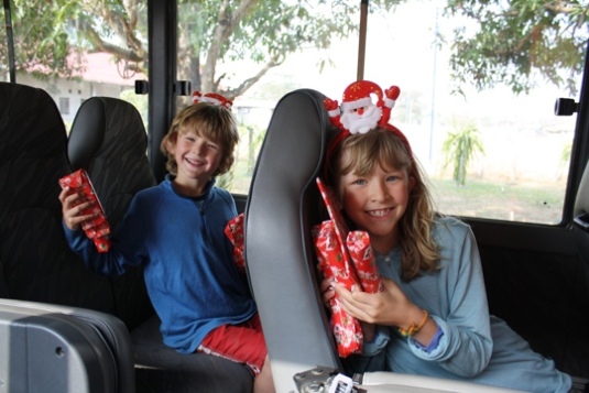 A long driving day for Christmas day, the kids constantly amaze us with how well they chill out and get through each journey, each strange meal and each toilet situation. We’ve arrived at our night stop and watched an elephant have a bath. Christmas dinner was a steak ordered from the guesthouse…