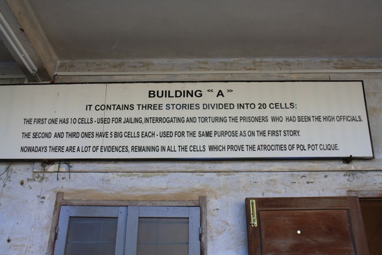Our first stop was at Former office S.21, the genocide museum. This used to be a school until April 1975, when it was changed to a detention, interrogation, torture, and murder facility on the order of Pol Pot, the nutcase leader of the Khmer Rouge. Only 7 people came out alive of the approximately 20,000 that were imprisoned.