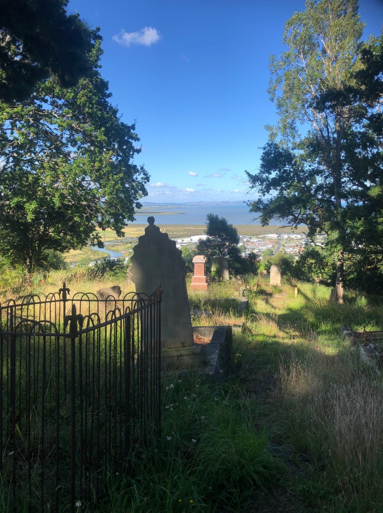 On my way back to Auckland I stopped briefly at the Shortland Cemetery. Set high on a hill on the outskirts of Thames it has been in use since the late 1860s and is the final resting place of four infant siblings of my hubby’s grandmother, Helena Scott (nee Papa). Once I made the climb to the cemetery I realised it would be nigh on impossible for me to locate Flora who died in 1872 aged 11 months, Annie who died in 1878 aged 7 months, Laurence who also died in 1878 aged 9 weeks, or Rosetta who died in 1885 aged 3 months. The section they were likely to be in was both hilly and overgrown and I had on some very unsafe fake Birkenstock sandals. It was a recipe for a broken ankle or worse. Grandma Helena and another five siblings seem to all have made it to adulthood, while losing 4 out of 10 children would be horrific now I’m sure at the time it was fairly common odds.