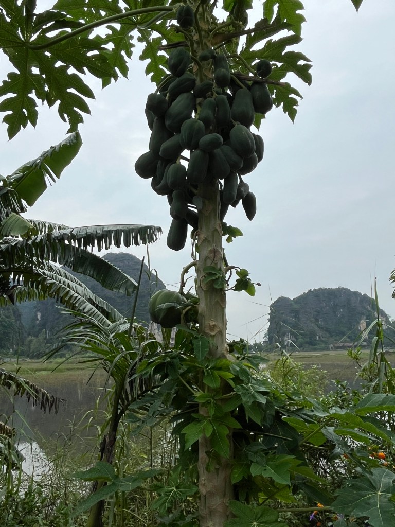 As soon as we were settled into our ‘mountain view’ room we ambled down the main street to find food. In the dark, the street, festooned with lights and featuring restaurants, travel agents and places to get massages could have been anywhere in Asia. When we woke up this morning and looked out of our room window we began to see the magic with our first glimpse of the limestone karsts, dramatic rock formations created by the erosion of limestone. The erosion leaves steep cliffs, caves, and unique shapes which shall, from now on, be known as the Tam Cốc rocks.