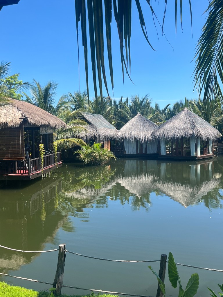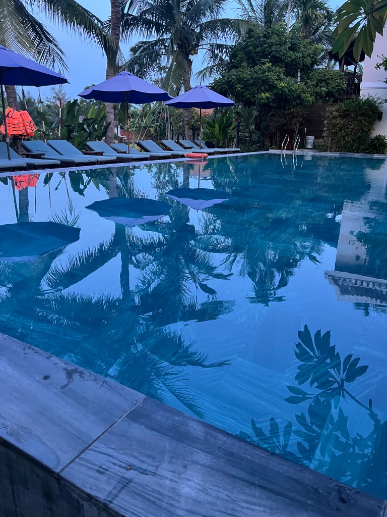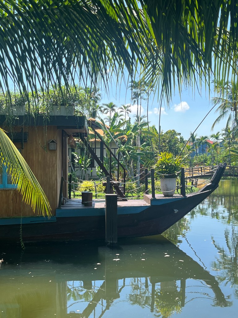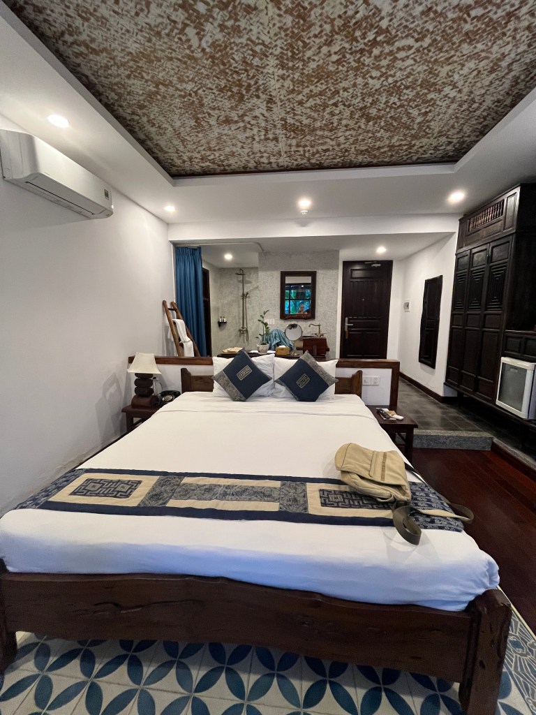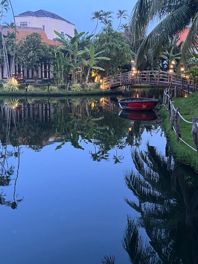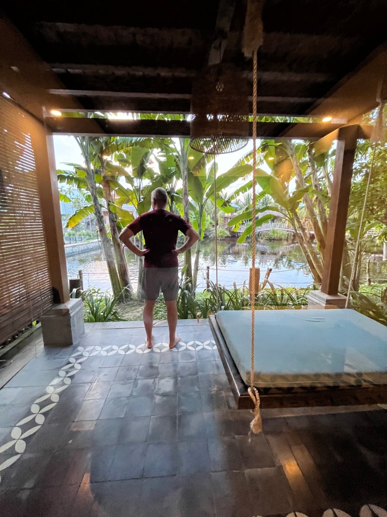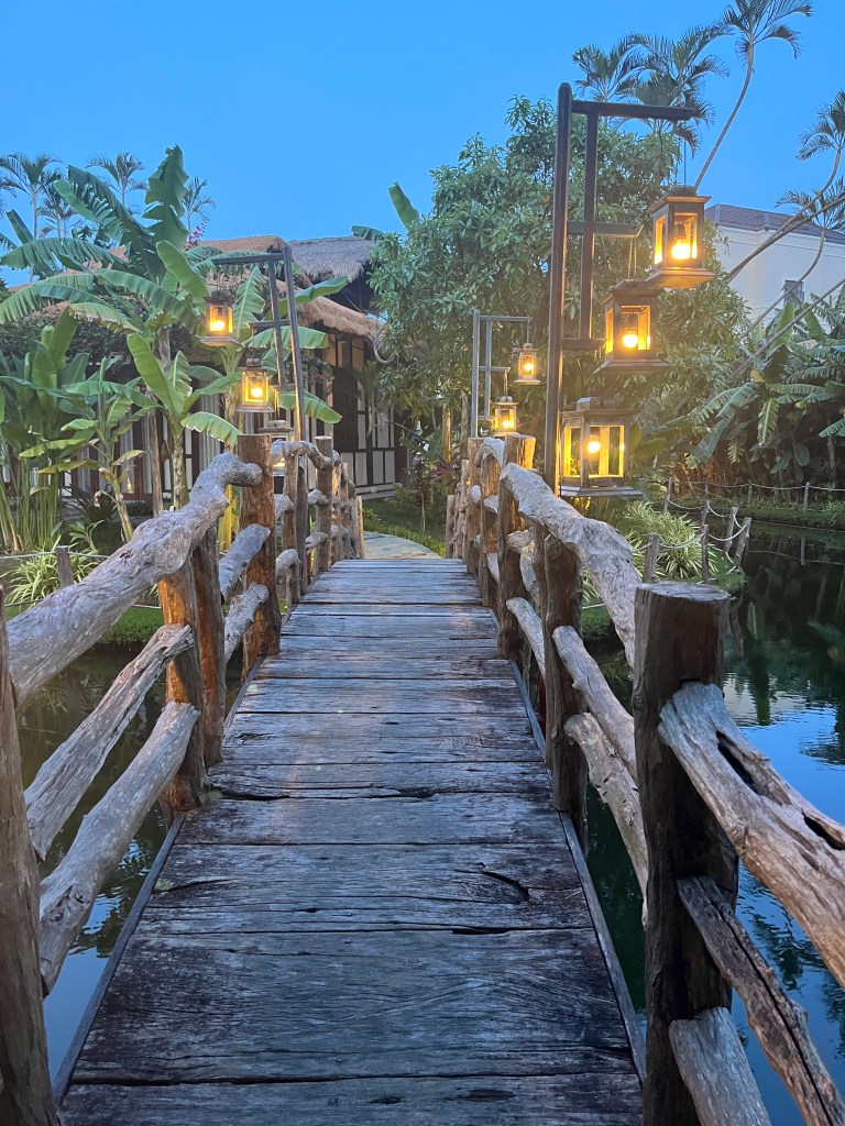 The closest we got to a crash was nearly taking out a cow giving zero fucks as it walked down the side of the motorway. The bus pulled into Da Nang with 4 of us being moved into a smaller vehicle with deceptively uncomfortable seats for the rest of the drive. Although I’m glad that is the only bus journey we are making this trip to their credit the bus company ‘owner’ met us in Hội An and after taking charge of my phone momentarily to send himself a Whatsapp message from it he showed us to a taxi he had organised to take us to our accommodation saving us 100,000 dong. The taxi driver multi-tasked, chatting with us via Google Translate during the 15-minute drive to the Zest Resort & Spa in Cam Thanh, convincing me to put my WhatsApp number in his phone so he could service us with his electric taxi. The Zest Resort & Spa is 4.5 km away from the hustle and bustle of Old Town, Hoi An and rates a 9.5 on booking.com (no, I don’t receive commissions from anything I refer.) I opted for a ‘Grand deluxe double room with external bathroom’ for our 3-night stay, which costs approx $125 NZD per night and includes breakfast. You can also get funky options like a floating bungalow or a boat set on one of the property’s lakes. It’s a tropical oasis, and I couldn’t be happier to have a few days here.