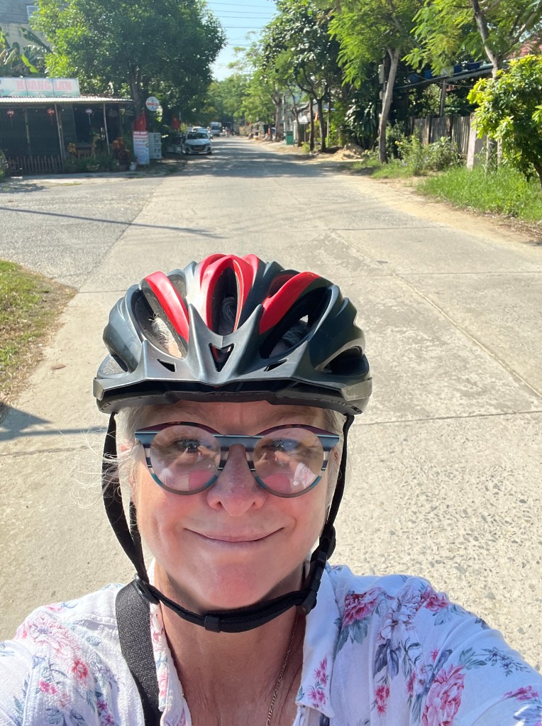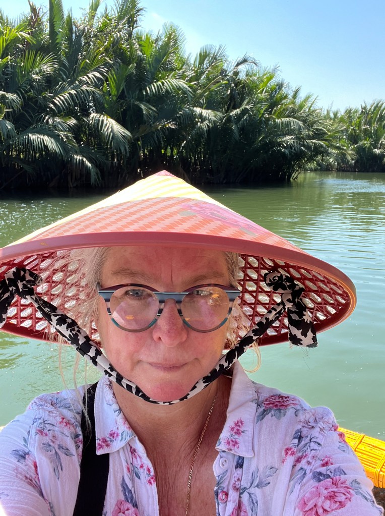 A cooking class was on my wishlist for Vietnam and this was the place to do it. While the hotel runs their own they have a minimum of 2 people, my other person wasn’t keen. The hotel reception organised an outside class and I was picked up by guide Ha at 8.30 am after I started the day with an outdoor bath (it seemed wrong to book it and not use it as much as possible). I was a little surprised that I was picked up on a moped but Ha explained that while the other 7 people booked were all being picked up in a luxury airconditioned van, they were staying in hotels in central Hoi An. She would ferry me to the market where we would meet them. She gallantly gave me the one helmet and I climbed aboard a motorbike for what must be the first time since the 80s when I owned a red Honda 50 called ‘The Skeedle’.