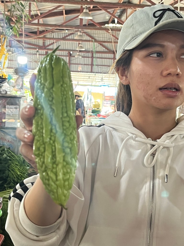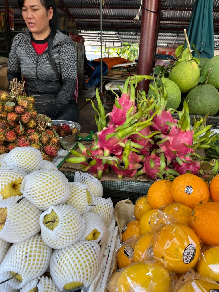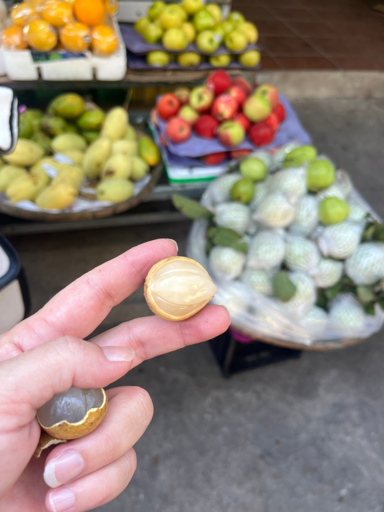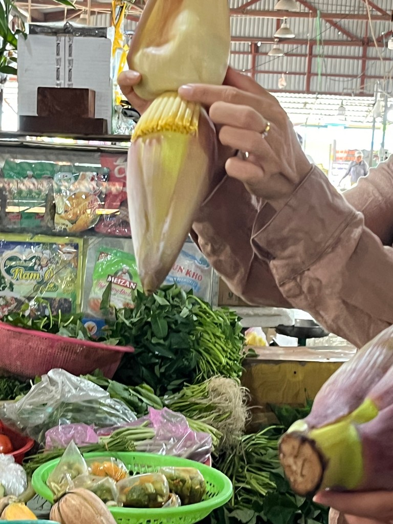 After the two young German couples, a young Irish couple and a mad Korean woman who live-streamed every second of our excursion joined us we were led around the market and shown various fruits, vegetables and herbs, most of which I’d not come across before, and had their name and use explained.