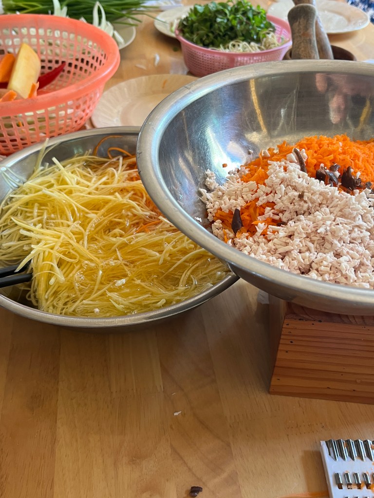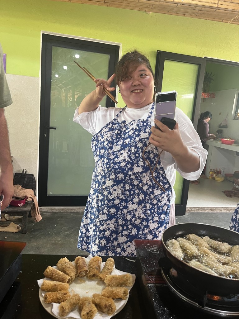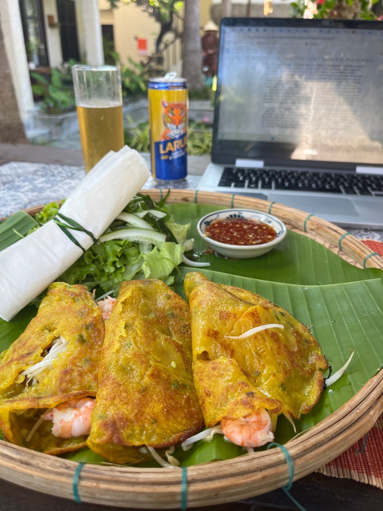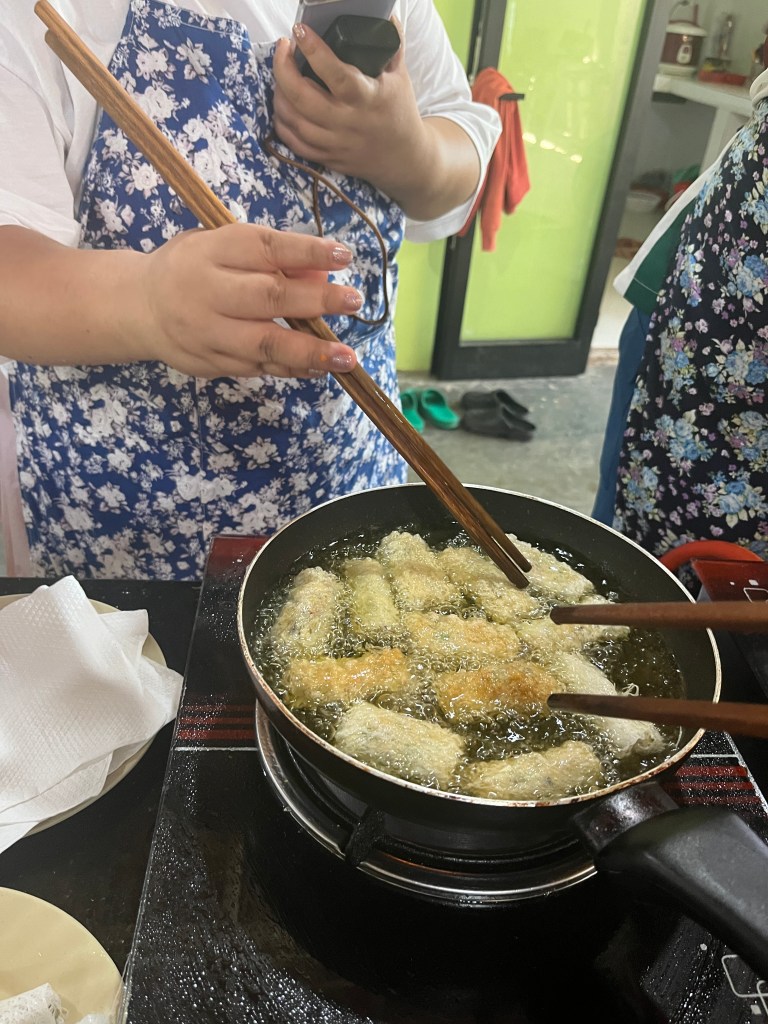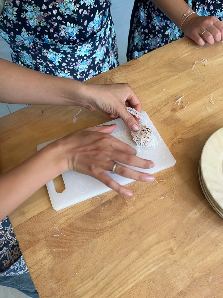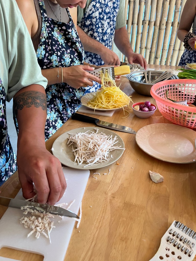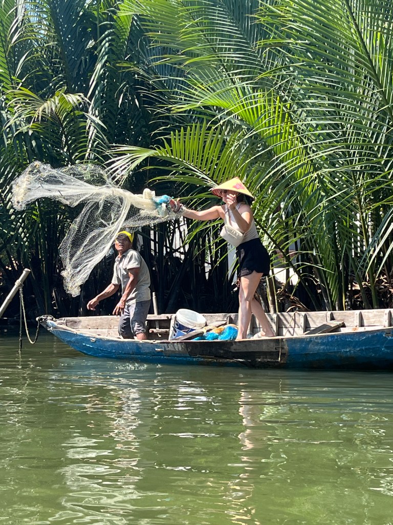 After a bit more paddling we disembarked at a bamboo jetty by Mr Cu’s house. Here Ha and her assistant guided us through making rice milk, using a traditional mill to turn rice into a liquid we then used to make traditional pancakes, which we cooked on small gas burners. We all sliced, diced and grated ingredients to marinate chicken pieces for a stir fry, cats ear mushrooms, taro, spring onions and more to make a spring roll mixture, and then papaya, onion, banana flower and other fresh ingredients for a salad. After cooking, and eating, all our delicacies we were rolled out of the minivan and into our accommodation. https://hoianvillageexperience.com/