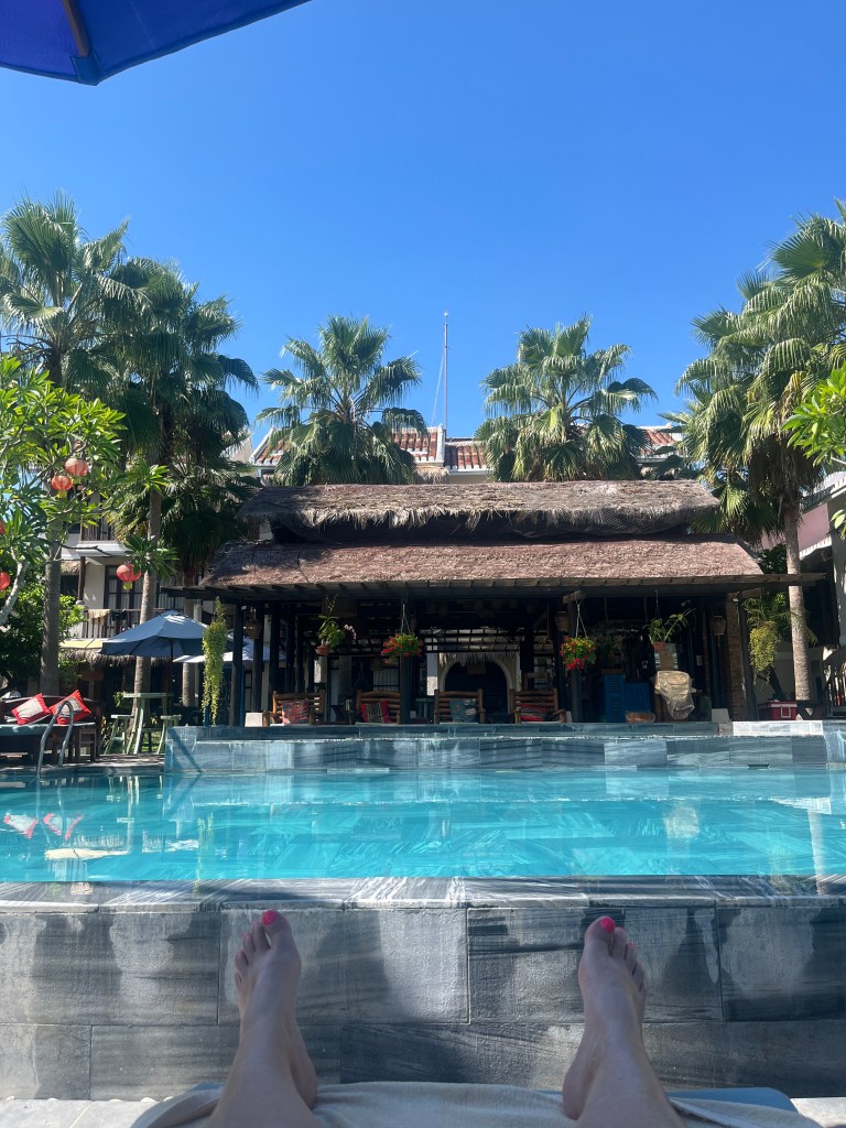 Hanoi is famous for its tailors and is the place to come if you want to get a suit or a frock made. While this wasn’t for us this time I’m not ruling out coming back to do it. There are also some excellent day trips from Hoi An to places like My Son which has temples comparable to Ankor Wat and the Ba Na Hills with its cable car taking you high into the cooler air but for me, day 2 in Ha Noi was declared a rest day. While Murray took the hotels courtesy bus to the local beach, I alternated between swimming, lounging, reading, watching the fish in the lake our room faces, painting, writing and napping. Before Murray left we enjoyed together a 20-minute foot massage that the hotel manager had gifted us with her compliments. While I’d put a poll on Instagram stating it was leg day and asking my followers if I’d be doing this in the gym or the spa, disappointingly or not surprisingly no one voted for the gym.