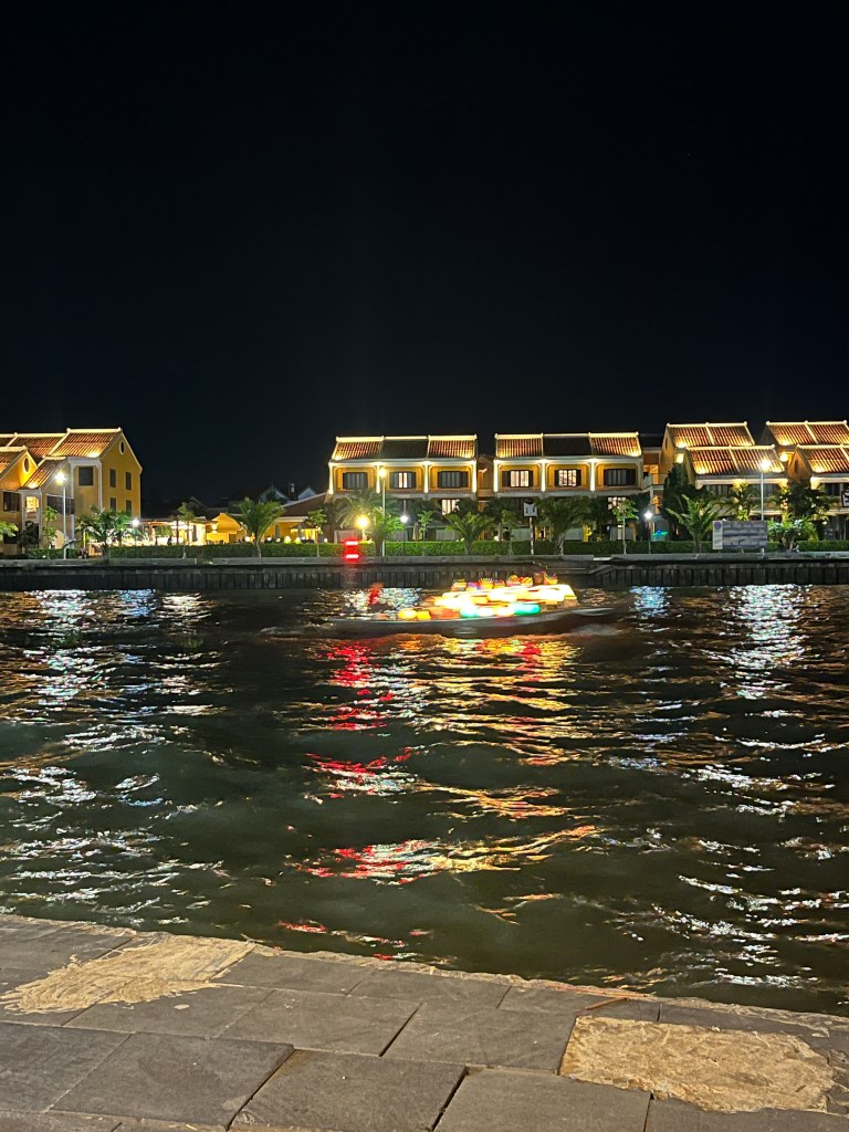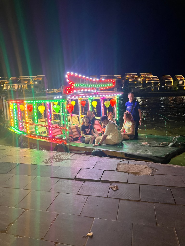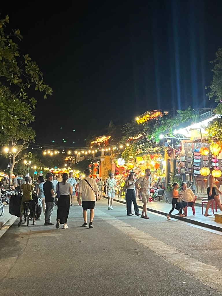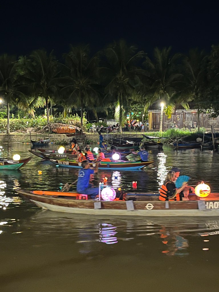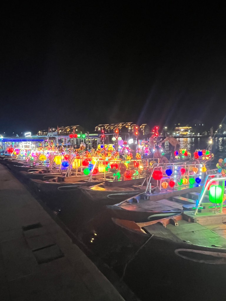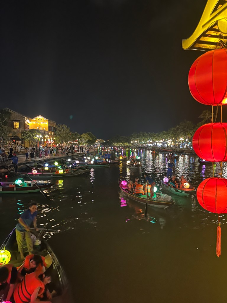 Waiting until the heat was out of the day, and the temperature had dropped to 30 degrees, we caught the courtesy shuttle into Ha Noi at 6pm, this turned out to be a brilliant decision. With less heat we felt the urge to walk further and with nightfall the city comes to life, illuminated by lanterns. Brought to Hoi An by Chinese and Japanese merchants when they came to trade and settle in the late 14th century, they are one of Hoi An’s most famous symbols having been crafted her for over 400 years. While the locals originally lit the lanterns to wish for good fortune, wealth, joy, health, and fair weather, now it’s also a chance to make a buck from tourists by selling them a trip in one of the big motorised lantern boats, smaller human powered lantern boats or buy selling them a cardboard box with a candle they can lay on the river. Don’t waste your money on the latter, the candle will burn for a few minutes before being taken out by a boat to forever litter the river.