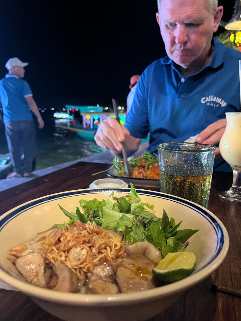 After checking in we strolled down the dark country road to the nearest intersection to find some dinner. We stumbled across the Lantern Restaurant (really the only thing open) https://lanternrestaurantandcookingclass.com/ We didn’t challenge Chef Thanh with our order of spring rolls, fried rice and sauteed morning glory.