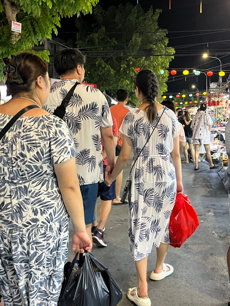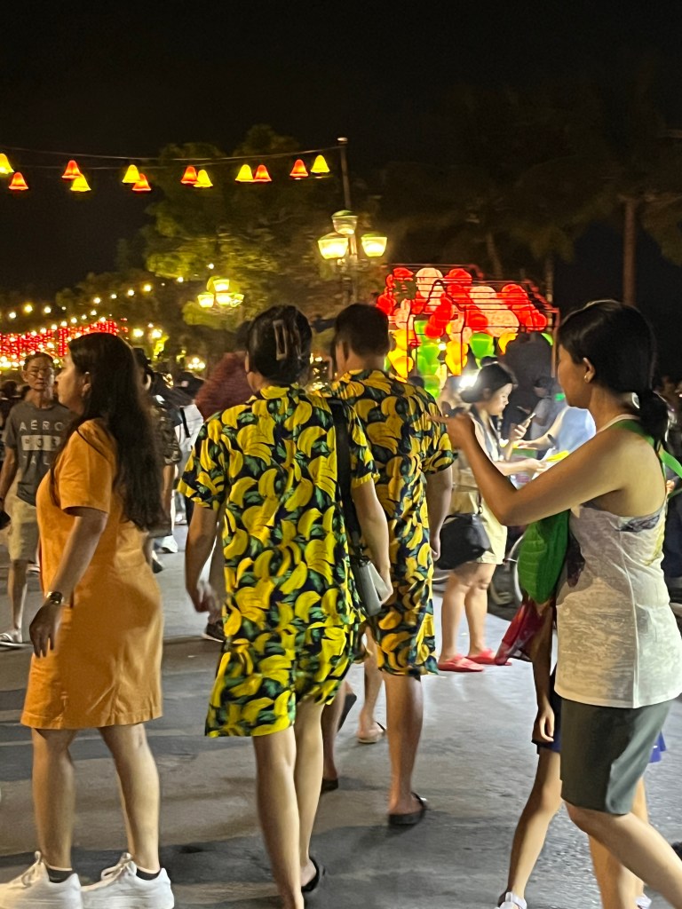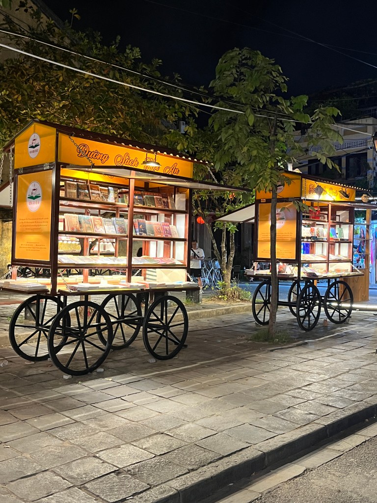 We found a riverside restaurant where Murray satisfied his craving for sweet and sour pork and I tried cao lầu, a traditional noodle dish from the area. The thick rice noodles sit in a small amount of broth and are topped with, in my case, sliced pork, lettuce and herbs. The waiter helpfully told me what to do which was to mix the ingredients together and pour over the small bowl of soy sauce. The two dinners and two drinks with prime riverside location cost $15 NZD. Wandering further along the river the sights and the energy kept getting better. Crossing over to the island we got a great view of the non motorised lantern boats before plunging into a vibrant night market. Live music played from many of the busy eateries with locals and tourists alike enjoying the cooler night air, a lightening display added to the excitement.