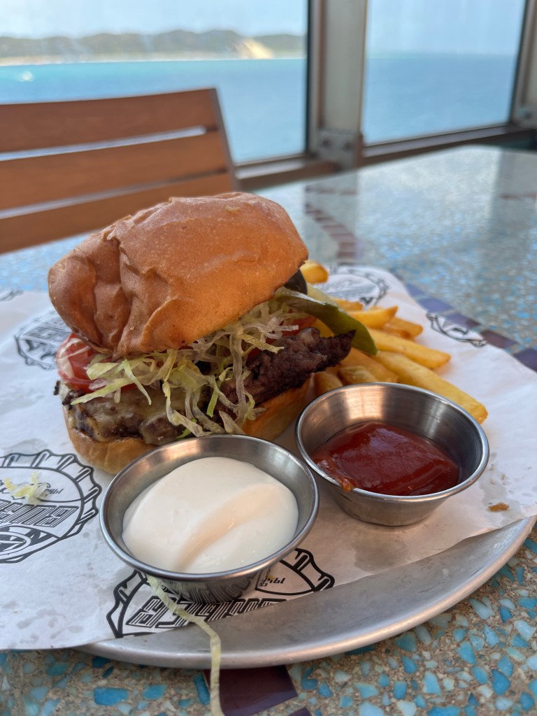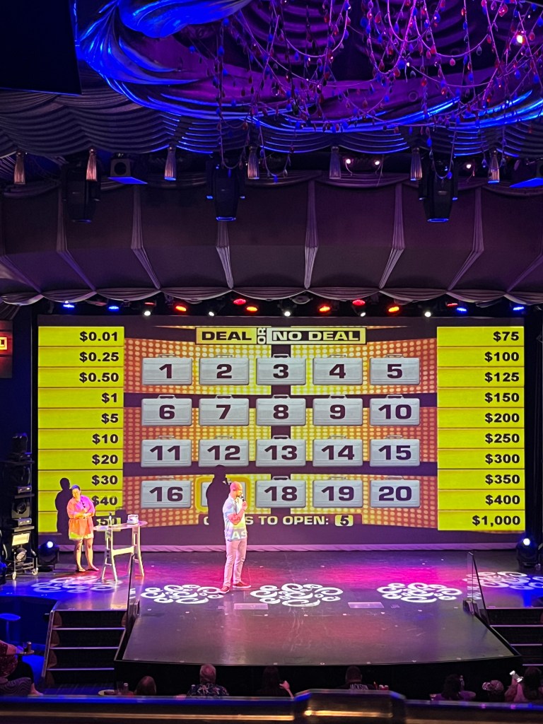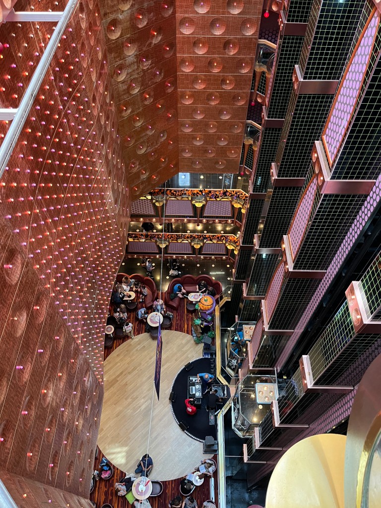 The Carnival website says the ship takes a max of 3,734 passengers, we were told during a quiz that there were 3,850 on board. I’m not sure where the extra 116 people were sleeping but at times it felt like all 3,850 people, many in large groups, identifying each other with their matching garish Hawaiian shirts, were in the same place, at the same time. The buffet was best avoided most of the time, not only because it was packed, but often the only redeeming feature of the food was that it was edible. It was a good place to grab an iced tea, a coffee or to fill up your water bottle. A much more pleasant way to dine to was reserve a table at the restaurant. The frustrating part of the restaurant experience was using the app to reserve a table, it was not straightforward to book a table for a group who weren’t all either on the same booking or connected via the app. The other frustrating thing was that at the time you booked, it gave you an estimated wait time. The wait time could go from 30-40 minutes to less than 10 minutes in a matter of seconds. Once your ‘table is ready’ notification pings to your app you had 10 minutes to get to the restaurant or the booking would be automatically cancelled and you’d have to start again. If you’ve never been on a cruise you may not appreciate how incredibly confusing it is to navigate the 14 levels and to work out which way is forward and which is aft when you’re inside and can’t tell which way the ship is travelling.