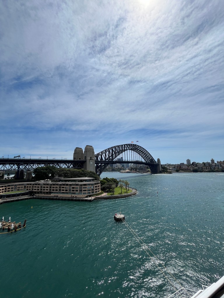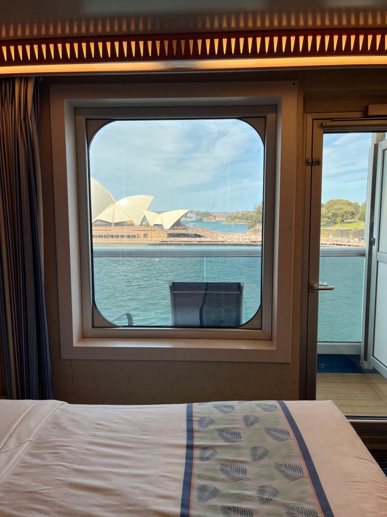 We arrived in Sydney early Sunday morning after an overnight flight from Vietnam. Sydney Airport has improved immensely since my last entry into Australia, we were through and out in no time. The public transport connection to Circular Quay is excellent and a train delivered us to within eyeshot of our ship in under 30 minutes. We were grateful to immediately drop our luggage at the ship at 10.30 am allowing us to go for a stroll, have a coffee and rest unhindered. While officially our boarding time was 1.30 pm, by midday we were allowed to board. The boarding process was seamless, and after a brief stop at our muster station to learn how to put on a life jacket we were at the Lido deck buffet having our first taste of ship food. With an hour before we could access our stateroom we headed for the R18 back deck area, secured some prime deck chair real estate and had a snooze in the sun.